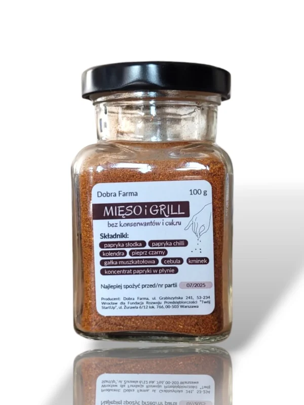 Smakowa eksplozja dla miłośników grilla! Nasza starannie skomponowana mieszanka przypraw „Mięso i Grill” to nieodzowny towarzysz każdej grillowej uczty. Wyselekcjonowane składniki, takie jak słodka papryka, papryka chili, kolendra, czarny pieprz, gałka muszkatołowa, cebula, kminek i koncentrat papryki w płynie, tworzą harmonijną kompozycję smaków, która podkreśli aromat każdego rodzaju mięsa.